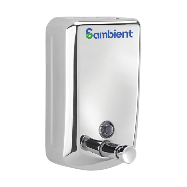 Equipo manual, de acero inoxidable para ser colocado en pared.